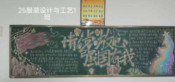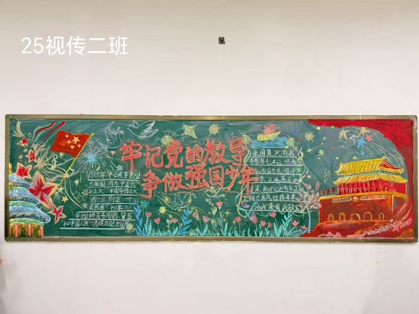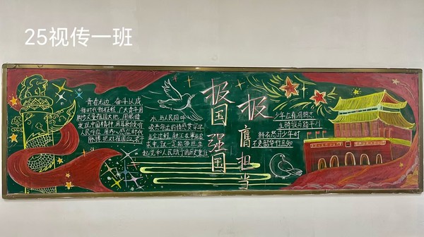 活动期间,各班级积极响应,精心策划。一方方黑板报成为了传递时代强音、展示青春风采的生动窗口。同学们围绕主题,巧妙构思,认真创作。版面设计新颖别致,色彩搭配和谐醒目,图文并茂地展现了新时代青年学子心怀家国、勇担使命的精神风貌。