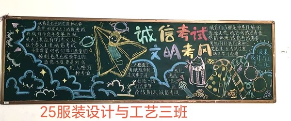 为营造风清气正、积极向上的学习考试氛围,引导学生树立正确的价值观与道德观,工艺美术系于12月24日至12月30日以“诚信考试”为主题开展班会、黑板报等宣传教育活动。