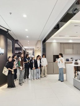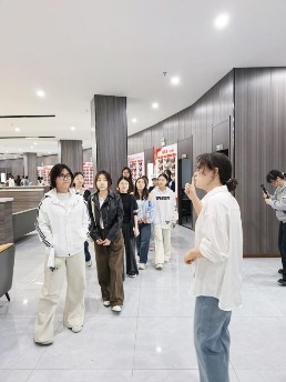 活动期间,公司工作人员全程引导,带领师生先后参观了装饰材料展示区、施工工艺样板间,结合实物与案例,详细讲解各类装饰材料的性能特点、应用场景及行业最新施工技术,现场耐心解答学生关于材料选型、构造工艺等方面的疑问,让学生直观感受专业实操细节。随后座谈会上,公司首席设计师、我系往届毕业生孙华珍与师生亲切座谈,结合自身从业经历,分享专业学习方法、行业发展趋势及就业前景,与学生热情互动、答疑解惑。